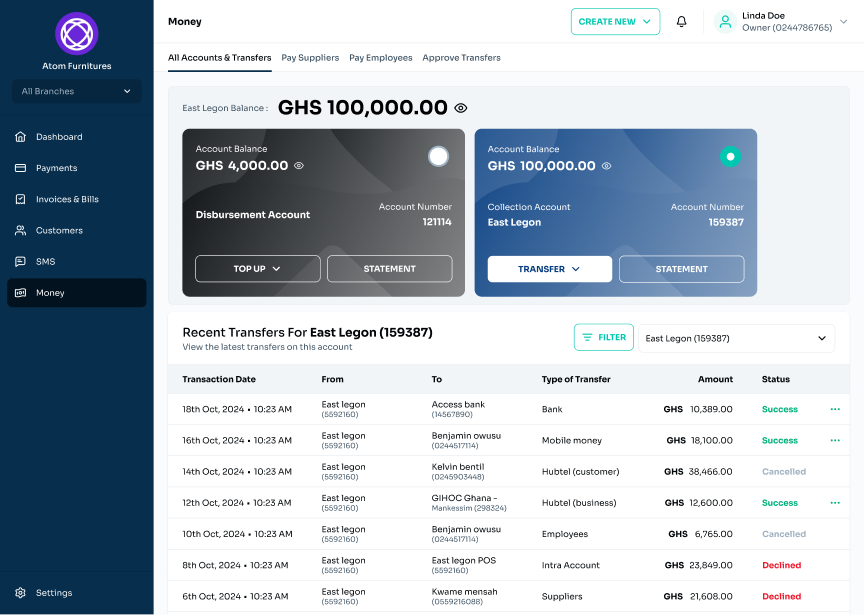 • Collections Account (formerly POS Sales Account): This is the dedicated account where you receive all payments from your customers.