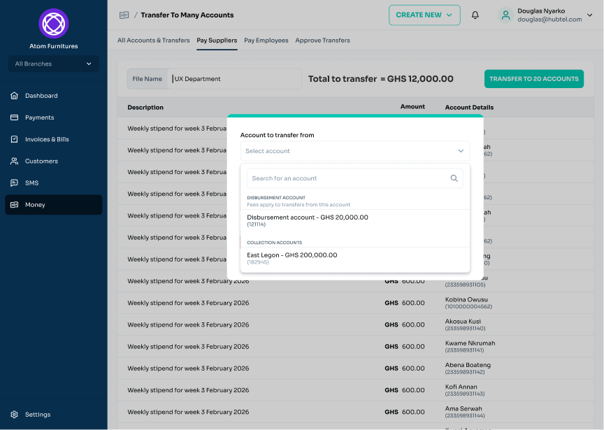 • Pay Many Accounts: You can now perform bulk transfers to multiple accounts at once using your Disbursement Account