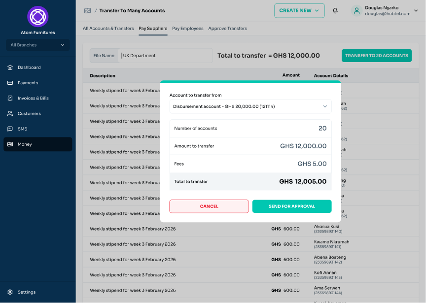 • Transparent Fees: Every bulk transfer now includes a clear breakdown of fees, giving you full visibility into your costs before you send money.
